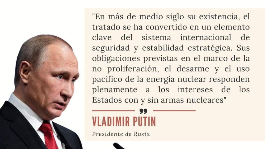 «No puede haber ganadores en una guerra nuclear y nunca debe desencadenarse», dijo Putin en un discurso ante la conferencia. El mandatario ruso insistió en que Rusia se mantiene fiel a la «letra y el espíritu» del tratado. Putin a años luz de la cáfila de políticos degenerados que gobiernan occidente.