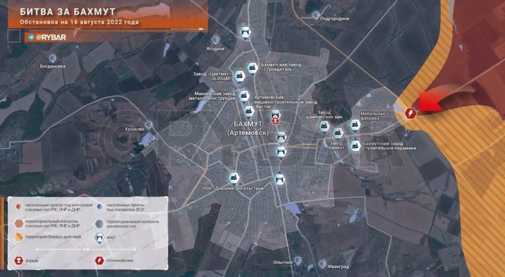 Batalla en Bajmut a las 18:30 del 16 de agosto de 2022