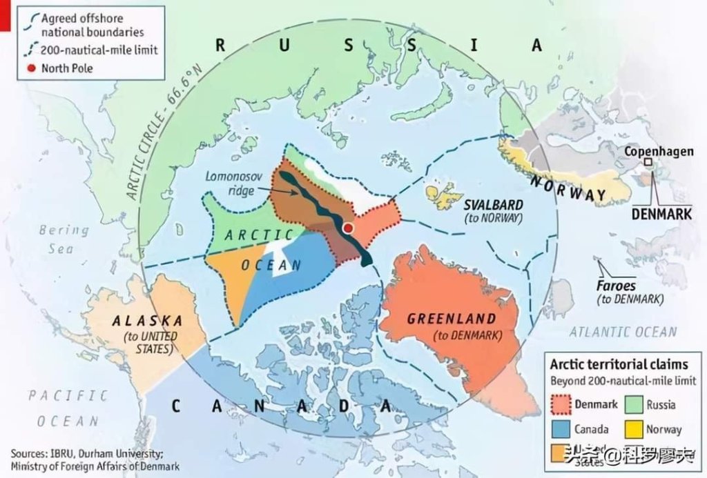 Ese es el contexto. Existe un punto de partida que no puede ser obviado bajo ninguna circunstancia, ¿quién tiene mayores posibilidades en sus reclamos soberanos?, sin lugar a dudas Rusia ¿lo digo por qué soy pro ruso?, no, en absoluto, lo digo porque está demostrado y lo que hacen los demandantes, es como ubicarse en el entorno, por cuestiones de los acuerdos de los espacios marítimos internacionales, porque al centro y atravesando todo el continente Ártico, o lo que queda de él, está lo que sigue: la dorsal de Lomonósov es la dorsal oceánica que va desde el mar de Láptev hasta el norte de Groenlandia, pasando por el Polo Norte geográfico. Cuando existen controversias territoriales entre Estados, ustedes deben saber que la fuente del derecho es la ley y la costumbre, pues en este caso, es demostrar que tal o cual territorio, que antes no se veía porque está cubierto, o bien aún cubierto de hielo, pero que en prospecciones submarinas se puede demostrar que es la continuidad de una cadena montañosa de tal o cual país, pues nada, el Polo Norte nace en Rusia, así de simple. Por algo se llama la dorsal de Lomonósov.