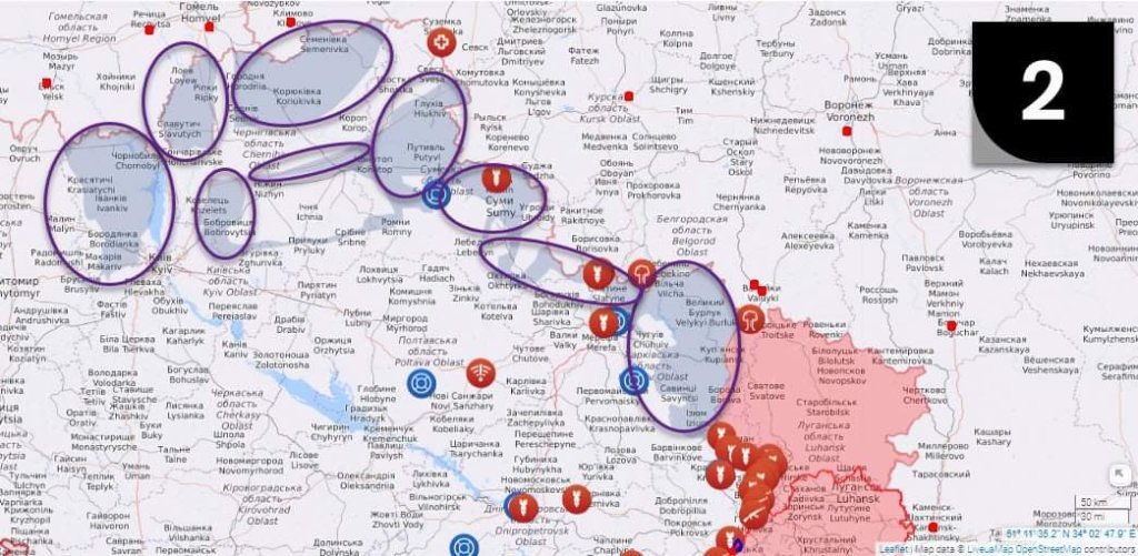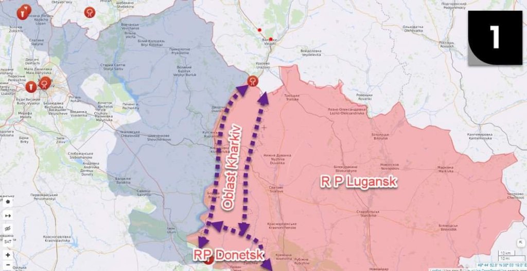 Si usted mira bien las imágenes, verá que el retiro de las tropas rusas de la parte del Óblast de Kharkiv (Foto 2) representa un 20% del retiro ruso de abril 2022.En ese momento los generales 2.0 no dijeron la guerra está perdida ni mandaron al gulag imaginario, al alto mando ruso. En la Foto 1, se puede apreciar bien que existe la franja del río, que separa hoy, la zona controlada por Ucrania y la zona controlada por Rusia, ahí coloqué los nombres de las Repúblicas Populares y el Óblast de Járkov. Le llamaré desde ahora, corredor de Suwalki II.