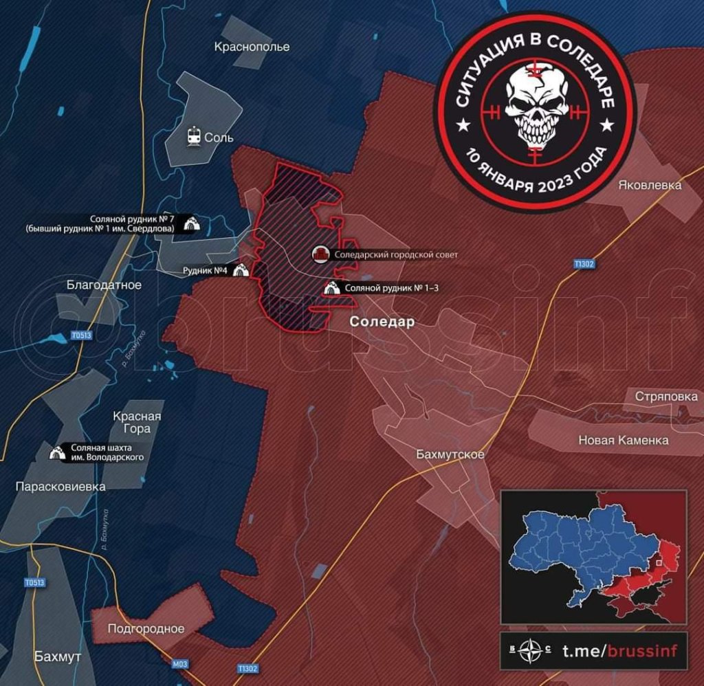 Con esta declaración, dejan tanto a Zelensky como la vice ministra de Defensa, con las nalgas al aire. Las fuerzas armadas ucranianas admiten que la situación en Soledar es «muy difícil». Un portavoz del mando oriental de las fuerzas armadas ucranianas señaló hoy que la situación en la localidad de Soledar, bajo ataque ruso, es «muy difícil» y «la más complicada del frente oriental». «Durante la jornada golpearon Soledar en 86 ocasiones con distintos tipos de artillería, así que la situación allí es ahora muy difícil, la más complicada del frente oriental», dijo el portavoz, Serhiy Cherevaty, en declaraciones citadas por la agencia «Ukrinform».