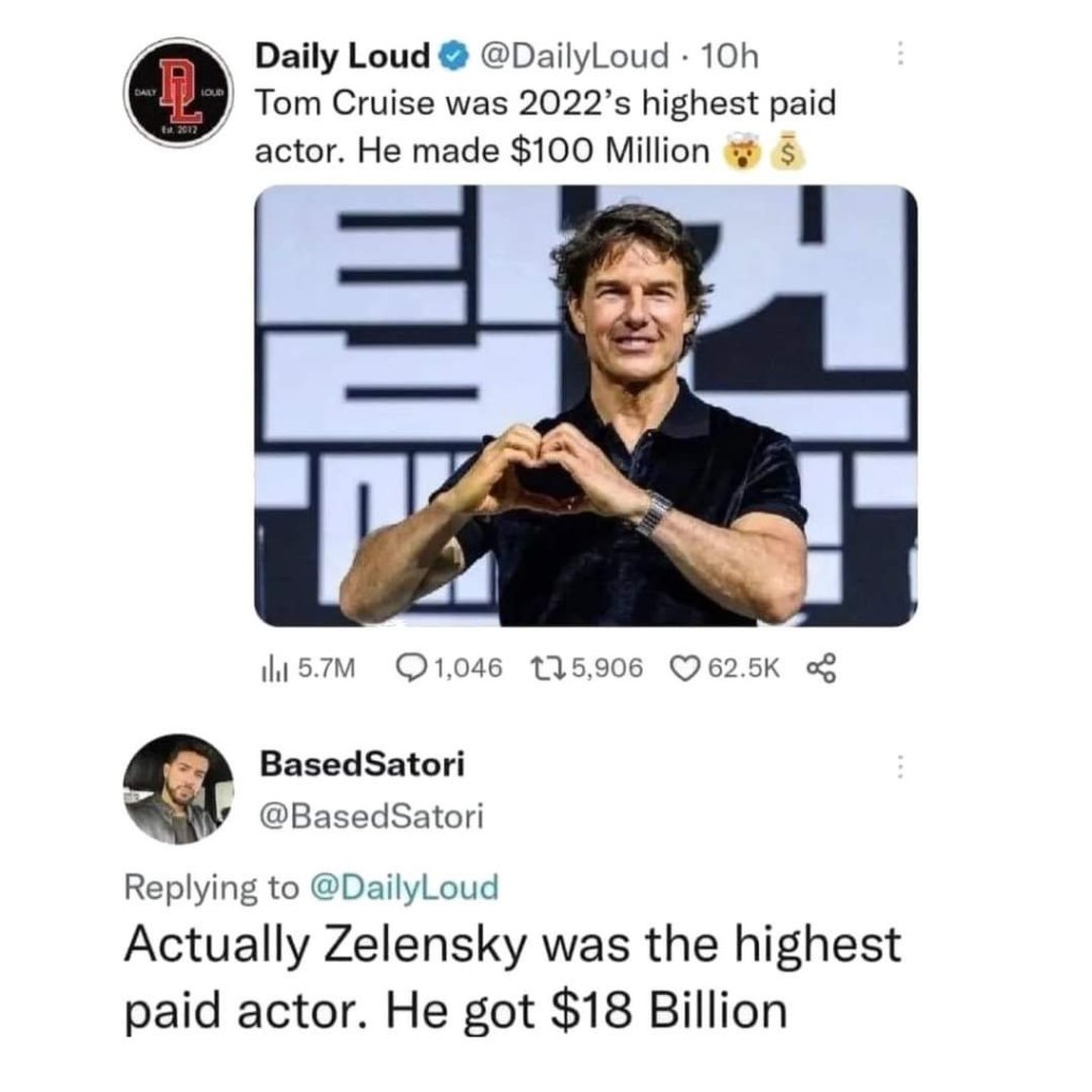 Y yo me pregunto ¿algunas de esas cosas les permitirá o les permitió que los rusos no se hicieran con el 20% de su territorio? ¿alguna medida de esas, les permitirá ganar esta guerra, o lo que es peor, no perderla?, obvio que no. Es una verdadera farsa moral, Ucrania es responsable de haberse prestado a un juego que ella no podía jugar ¿o acaso no sabían lo que hacían los EEUU empujando a la guerra contra Rusia a Ucrania?