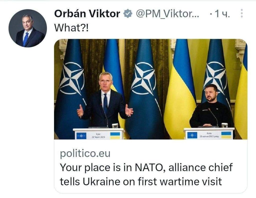 Hoy Jens Stoltenberg, volvió a decir una enormidad, afirmó que Ucrania debería entrar a la OTAN después de su ofensiva. El solo hecho de que haya dicho que todos los miembros estaban de acuerdo, tuvo una respuesta de inmediato, de la parte del Primer Ministro húngaro, quien solo escribió What?!. Esto es un despropósito, ni siquiera Suecia ha podido entrar, dada las condiciones impuestas por un sólo país, Turquía.