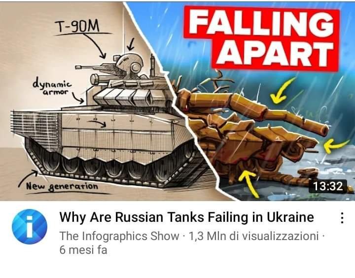 Escuchaba una emisión europea, no sé si era belga, francesa o la parte suiza francófona, a un Sr. especialista que decía que al parecer habían perdido un viejo Leopard, y un vehículo de transporte (cuando han perdido más de 100 en una semana de contraofensiva), pero que no había problema porque eran reparables, no como los vehículos rusos que explotaban todos, y todos morían, habló de una batalla en marzo entre tanques rusos y ucranianos, supongo marzo 2022, en que los ucranianos destruyeron 150 tanques rusos y no perdieron uno solo.