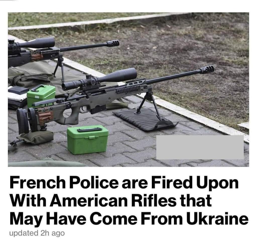 Fotos: La policía francesa confiscó a los manifestantes rifles de francotirador fabricados por Accuracy International, que fueron entregados a Ucrania el año pasado.