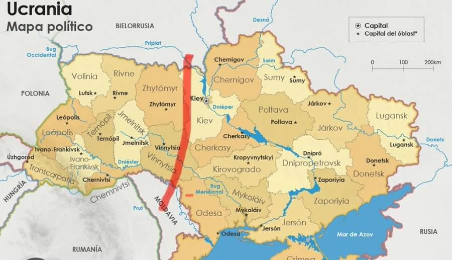 Foto: Oupsss, caminando por la web, me encontré con este mapa, alguien le puso una división, y me recordé l oque escribí a fines de febrero del 2022, Rusia se quedará con toda la rivera izquierda del Dniéper, y en los oblast donde está en ambas partes, de quedará con ambas partes, más Odessa, no sé si qe quedará con el Óblast de Kirovogrado y el Óblast de Vinnitsa, pero el resto sí, incluyendo el Óblast de Kiev y el Óblast de Cherkasy, con mapas orillas.